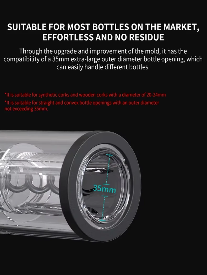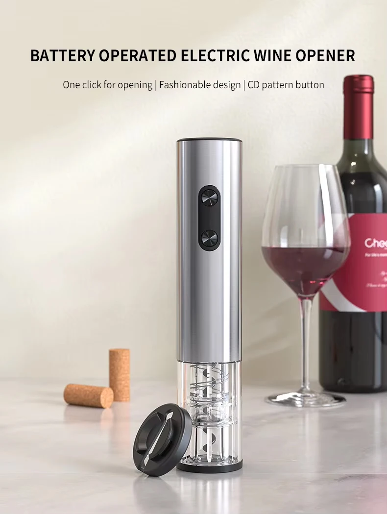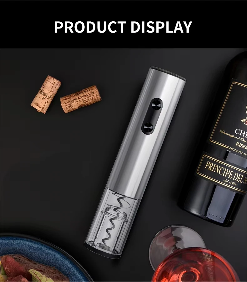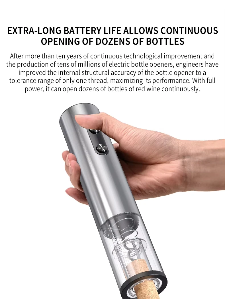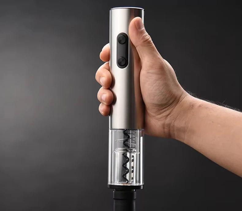 Placez simplement le tire-bouchon sur la bouteille, appuyez sur le bouton pour retirer automatiquement le bouchon, et savourez votre vin ! Propre, rapide et sans effort.